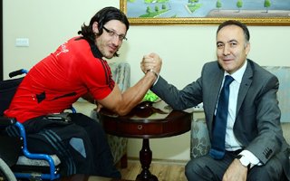 Avrupa Bilek Güreşi Şampiyonu Gökhan Seven Erzurum Valisi Dr. Ahmet Altıparmak’ı ziyaret etti. Bedensel engelli sporcuyu tebrik eden Vali Altıparmak başarısının devamı için kendisine her türlü desteği sağlayacağını söyledi. 18 - 25 Mayıs 2014 tarihleri arasında Azarbaycan’ın başkenti Bakü’de yapılan 24. Uluslararası Avrupa Bilek Güreşi Şampiyonasında 60 kilo sol kolda Avrupa Şampiyonu, sağ kolda ise Avrupa 2. Si olan Gökhan Seven 8 yıldır milli takım forması giydiğini ifade ederek ülkesinin bayrağını zirveye çıkarmaktan dolayı büyük mutluluk yaşadığını dile getirdi.Avrupa Şampiyonu sporcuya çeşitli hediyeler veren Erzurum Valisi Dr. Ahmet Altıparmak ise bu başarısından dolayı kendisini tebrik ederek, başarısının devamı için bundan sonra da her türlü desteği sağlayacaklarını kaydetti.